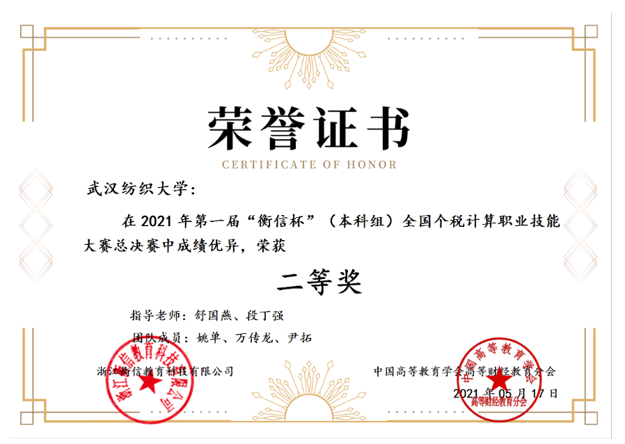 在全国总决赛中,澳门十大老牌信誉平台排行榜姚单、万传龙、尹拓同学在舒国燕、段丁强老师的带领下,与来自全国各地的138所学校、近370支决赛队伍、一千多名参赛选手进行激烈角逐,最终取得全国总决赛二等奖的优异成绩。舒国燕、段丁强老师被评为“优秀指导老师”。另外两组选手(队员:朱宝、李佩、汪响、邓竣豪、李梦馨、姜雯青)荣获华中赛区三等奖。个税在国家重大政策中持续发挥作用。新一轮个税改革涉及千家万户利益,对完善收入分配、增加居民收入、扩大消费发挥了重要作用,成为推进国家税收治理体系和治理能力现代化的成功实践。个人所得税体系有效发挥筹集财政收入、调节收入分配和稳定宏观经济的作用,并不断夯实社会治理基础。
