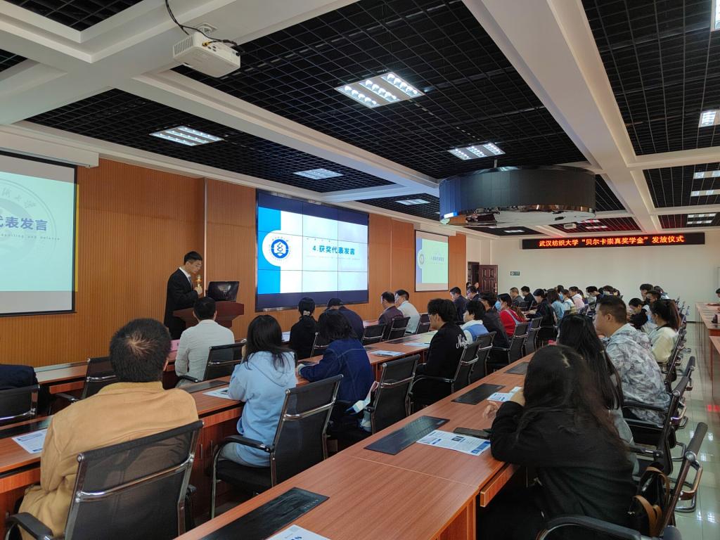 11月18日下午,澳门十大老牌信誉平台排行榜“贝尔卡崇真奖学金”发放仪式在崇德楼308演播厅举行,武汉贝尔卡药业有限公司总经理袁智才、人力总监高辉、外贸经理吴彬、运营总监万子豪等企业方代表应邀参加发放仪式并与现场师生交流互动。学校教育发展基金会副秘书长苗淑贤、学工部副部长武猛、创新创业学院副经理凡蓉蓉及澳门十大老牌信誉平台排行榜经理段丁强教授、党委书记毛长文教授、党委副书记黄俊鹏、师生代表参加发放仪式,仪式由辅导员庞浡主持。