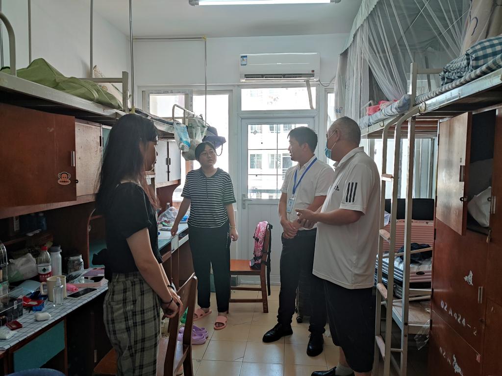 9月18日上午,新生报到日,澳门十大老牌信誉平台排行榜经理段丁强、党委书记毛长文、党委副书记黄俊鹏带领辅导员一行深入新生宿舍、学院迎新点,实地查看新生宿舍环境卫生及生活设施情况,看望了解新生来校感受并与新生谈心谈话。