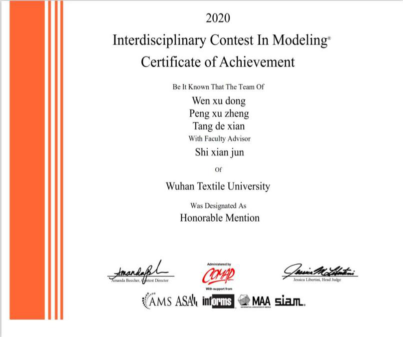 由于新冠肺炎疫情的影响,此次比赛分别于北京时间2月14日6点至2月18日9点、3月6日6点至3月10日9点在全球通过网络同步举行。参赛各队无法像往届竞赛一样进行集中讨论、应对比赛,给需要发挥团队协作才能更好完成的数学建模竞赛带来挑战,增加了竞赛难度。指导老师和参赛同学们克服种种困难,利用网络交流工具,积极备赛。凭借良好的素质和团队精神,经过不懈的努力,顺利完成竞赛。