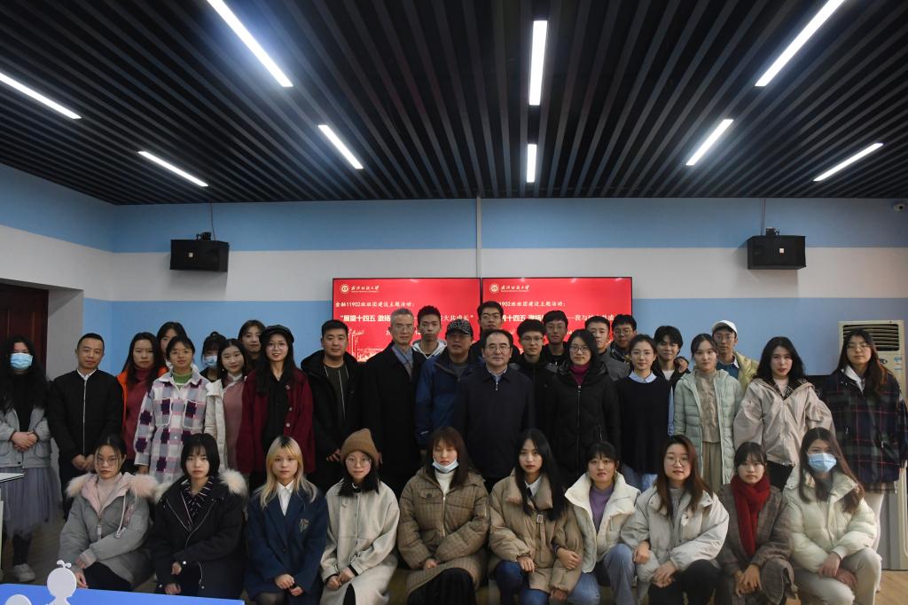 田辉玉对活动主题、内容与形式表达了肯定,并为班级员工取得的成绩和展现的班团风采点赞。他表示,此次活动主题鲜明、内容丰富、形式多样,展示了班级同学积极向上的精神风貌和团结奋进、勤奋刻苦、多才多艺的班级形象。他基于疫情防控阻击战、脱贫攻坚、中美贸易战等事例,结合具体数据与典型案例,为同学们宣讲党的十九届五中全会精神,作形势政策报告。他指出,2020年是特殊而不平凡的一年,这一年的特殊经历一定会定格于我们的人生记忆中。无论是疫情防控阻击战还是脱贫攻坚、中美贸易战等,都彰显了中国特色社会主义制度的优越性,展现了中国共产党团结带领全国各族人民取得的伟大成就。他表示,当前,世界局势加速变化,处在实现“两个一百年”奋斗目标的历史交汇期,我们的国家仍然面临着发展不充分不平衡的问题。党的十九届五中全会描绘了我国“十四五”时期的宏伟蓝图和2035年的美好愿景,美好愿景的实现需要青年老员工接续奋斗。他向同学们提出四点期望:一是要做志存高远的追梦者。要将个人梦融入中国梦,厚植家国情怀,开拓眼界见识,与新时代同心同向、与经济社会发展同频共振;二是要做研精覃思的学习者。知识是能力、境界的基础,要围绕知识习得来确立目标,既要有专业知识还要有思想品德方面的知识,形成科学知识体系;三是要做躬体力行的实践者。知识学习不应只停留在书本上、装在头脑中,更要应用于实践中、落实到行动上,要在学校打下坚实的知识基础、思想品德基础,在学习与实践中奋斗开拓,为社会发展和国家富强做贡献;四是要做高情远致的奋斗者。教育之本在立人,立人之本在立心,要追求高尚的精神和道德境界,注重道德的实践与人格的养成,将“美”传递给身边的人、投入在建设祖国的事业中。活动最后,田辉玉与结对班级同学们亲切合影留念。