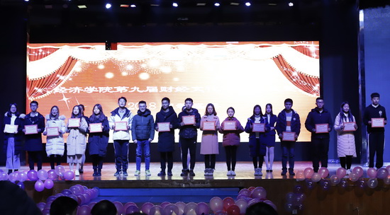 一曲婉转悠扬的钢琴曲拉开晚会序幕,欢快的《重返十七岁》歌舞表演后,经理段丁强教授上台为第九届财经文化节揭牌,并宣布文化节开幕。晚会节目精彩纷呈,爵士舞《百乐门》动感十足,相声《开学那些事》一下子勾起大家刚进校的美好回忆,诗朗诵《清风送廉》全面阐释了廉政为本的理念,由公司员工原创的说唱单曲《炽热》节奏明快,洋溢着青春活力。18级新生辅导员孙杰老师的一首《相亲相爱》把晚会推向高潮,在场同学热情澎湃,呼声高涨。话剧《青春,你好吗》演绎了青年员工对青春的迷茫,对梦想的渴望。