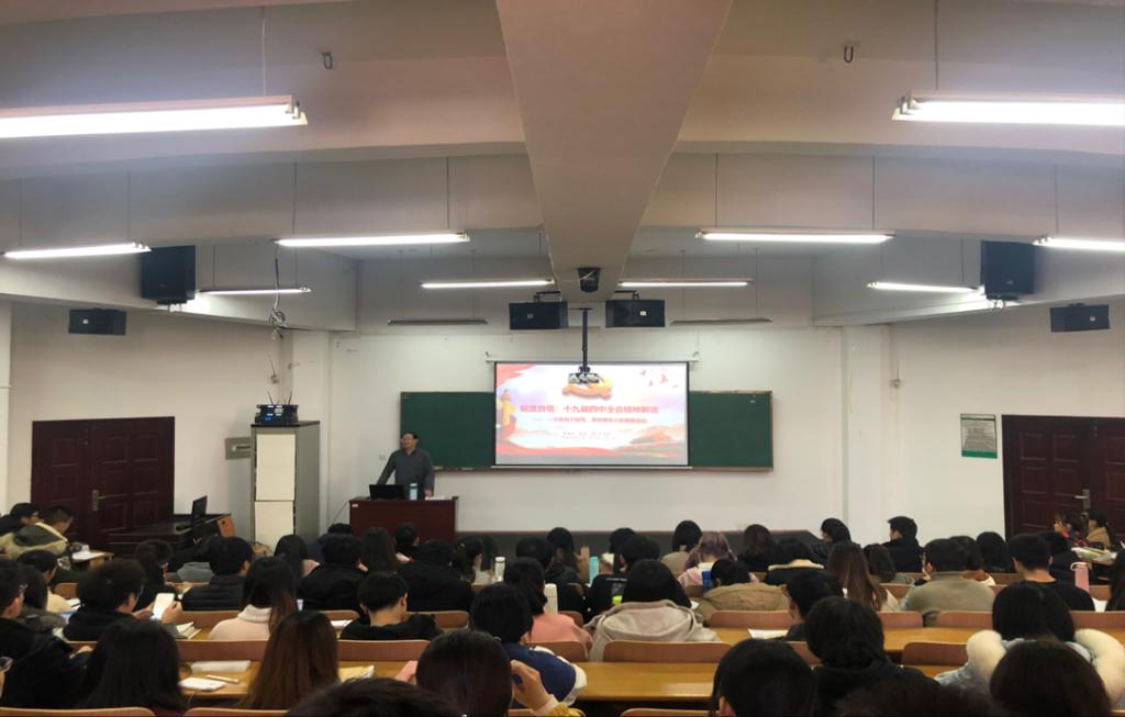 12月11日下午,省“百马行动”宣讲队队员、公司党的十九届四中全会精神宣讲团成员、马克思主义学院张建林教授来澳门十大老牌信誉平台排行榜作主题为《制度自信:党的十九届四中全会精神解读》的党的十九届四中全会精神宣讲。公司党委副书记黄俊鹏、全体辅导员及学院员工党员、入党积极分子共200余人聆听了宣讲,宣讲会由公司党委副书记黄俊鹏主持。