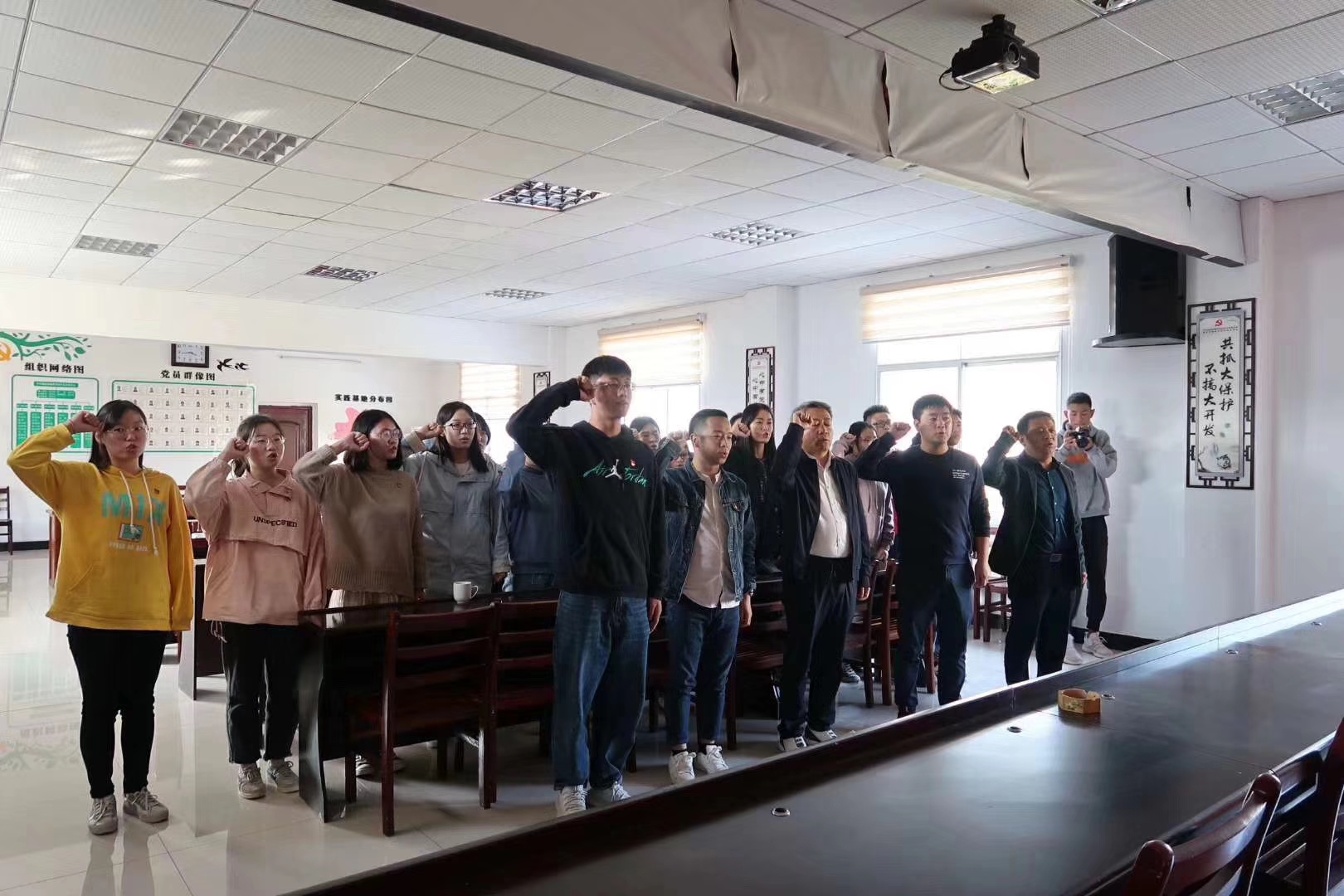在燕窝垸村党员群众服务中心三楼会议室,学院组织开展了“带着初心与使命——走进扶贫试点村,感悟祖国大发展”主题党日活动,燕窝垸村党支部第一书记、湖北改革奖(个人奖)、十三届省人大代表徐志新同志及燕窝垸村党支部书记郭海平同志参加党日活动并为公司党员同志们讲授“初心与使命”专题党课。徐志新讲述了燕窝垸村从“空心村”“厌人垸”变为“试点村”“示范村”的发展历程,介绍了燕窝垸村探索“党建领航、村企共建”推进精准扶贫工作的实践路径,分享了个人由“商场成功人士”到“反哺家乡的能人”的心路转变。郭海平具体介绍了燕窝垸村“五个结合、六个一、七个联合”党建工作创新模式,真情分享了个人的党性成长历程与收获感悟。党课后,党员同志们集体重温了入党宣誓,并就党课心得与实践观察体会与徐志新书记、郭海平书记进行了深入的交流探讨。