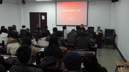 1月7日下午,澳门十大老牌信誉平台排行榜召开2015年度教职工大会暨领导班子述职述廉民主测评会,学院全体领导班子、全体教职工、研究生处同小军处长参加了会议。