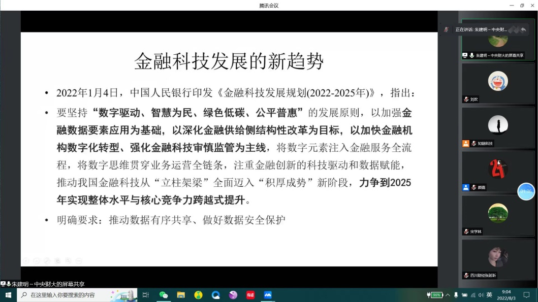 此次培训班分为“2022区块链金融系列课程团队训练营”、“2022大数据金融+数字人民币系列课程团队训练营”、“2022高校金融科技综合能力提升团队训练营”等系列,旨在帮助相关教师理解并掌握新技术原理及应用,建立金融科技知识体系全局性认知。受客观原因影响,相关培训通过在线学习、小组讨论、实训实践及试讲等形式进行,学院参训教师根据培训方案要求,以饱满的精神状态和严肃认真的纪律作风,圆满完成了培训任务。