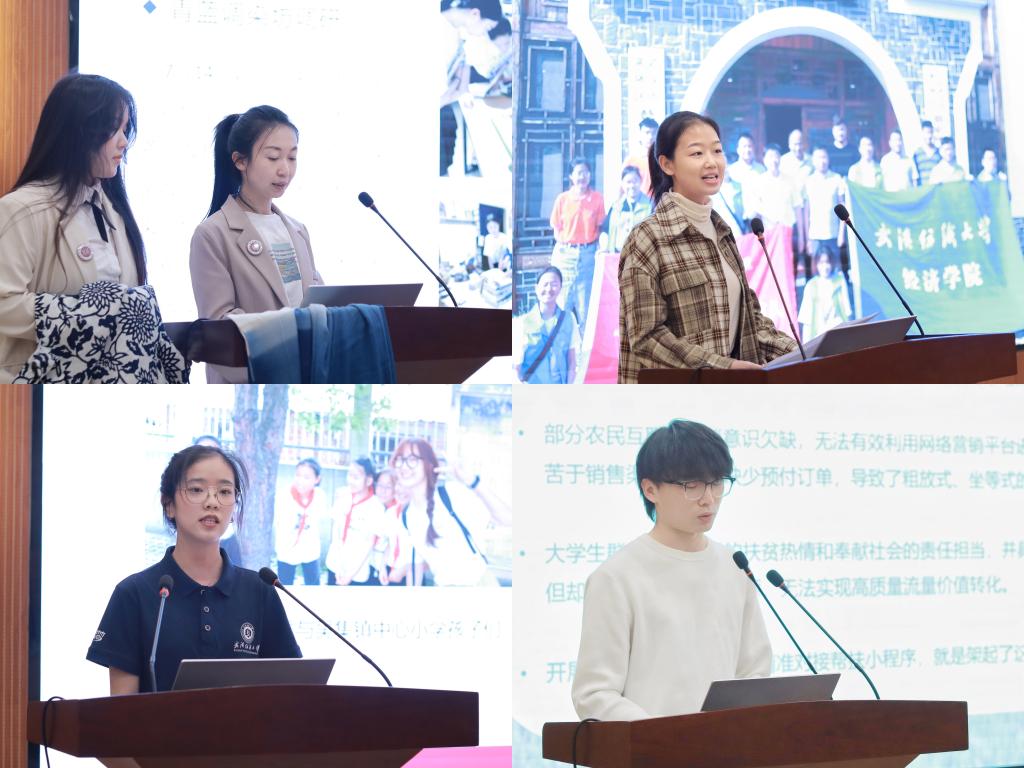 “走出校园、深入车间、站上田头,我才知道我的专业还可以做些什么……”“触摸到一朵朵棉花,看到棉花转化为一件件、一个个产品的神奇,我才真切感受到了纺织与科技的伟大……”“看到孩子们真诚的笑脸,看到老党员们坚定的眼神,我明白了我以后也要成为一个能给别人带来更多力量与价值的人……”讲述过程中,实践队员们一句句朴实的话语、一张张鲜活的照片,让与会人员感同身受,也激发了大家奋进逐梦的激情和信心。他们有的横跨大半个中国,来到大美新疆,与院士一起普及纺织科技知识,开展棉花产业调研;有的用专业服务社会,帮助村民推广农产品,深入车间提供技术方案,以青春力量助力乡村振兴事业;有的跨越2000多公里,以直观生动的影像语言和真挚朴实的基层视角,诠释出交通方式升级变化对当地社会生产生活的巨大推动作用;有的发挥专业特色,通过汉绣的创新设计与产品开发探究非遗汉绣擦亮地方红色名片,帮助乡村留守人员就业增收;有的在支教服务中将中国传统文化与美育相结合,带领孩子们在现代绘画、手工制作中学习优秀非遗,感受中国传统文化。一个个生动感人的实践故事不仅是他们成长的见证,更展现了纺大学子践行“崇真尚美”校训精神的真实缩影。现场高潮迭起,大家不时报以热烈掌声。