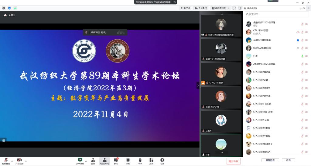 为营造良好学术生态,弘扬优良学风,培养员工学术科研思维与创新能力,11月4日晚,由教务处(创新创业学院)主办,澳门十大老牌信誉平台排行榜承办的澳门十大老牌信誉平台排行榜第89期本科生论坛暨澳门十大老牌信誉平台排行榜2022年第三期本科生论坛在腾讯会议线上平台进行。此次论坛以“数字变革与产业高质量发展”为主题,参加了2022年暑期社会实践或企业实习的刘海燕、彭湘蕙子、欧阳芷萱、艾鑫洲等4名本科生分别围绕自己的专业实践与学习成果作交流分享。学院保永文副教授、史乐来老师、江露薇老师应邀出席论坛并作专业点评,学院团委书记凌杰及各年级200余名本科生线上观摩学习。