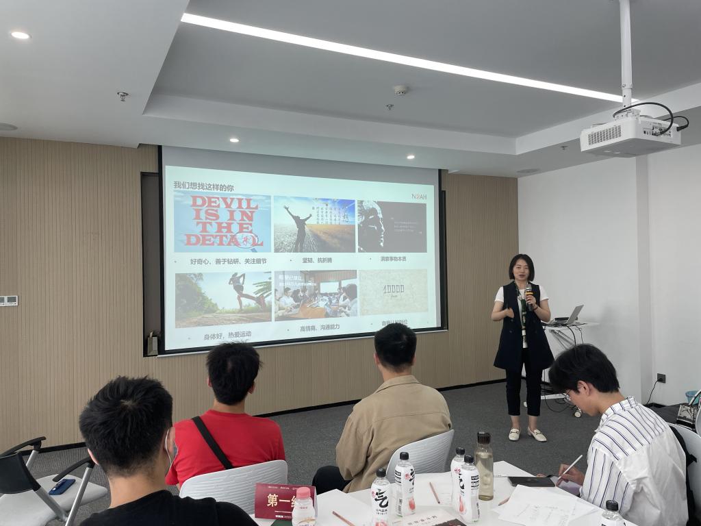 诺亚财富湖北区优秀校招生吴一丹带着员工们去参观了诺亚财富的员工办公区、获奖展览室和接待区,让同学们对诺亚财富有了初步的了解。诺亚财富公司中西大区武汉片区产品总监文静向同学们介绍金融行业、诺亚财富的公司背景、部门架构等,并向同学们提出有关择业的一些建议。高顿教育优秀学员内推诺亚财富的优秀校招生吴一丹进行职业选择和个人成长分享。在接下来的自由交流与互动环节,纺老员工踊跃提问,现场气氛活跃热烈。