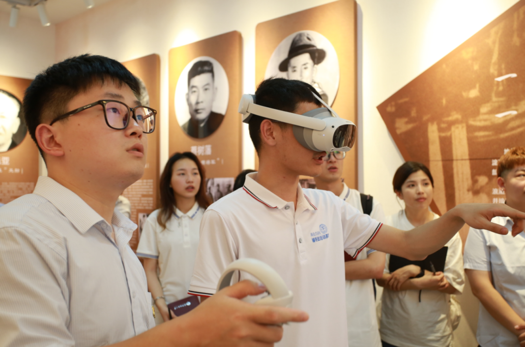 来到VR体验场馆,队员通过虚拟现实技术感受蔡甸传统建筑与文化风俗,利用手柄控制虚拟角色在场景内传送移动,沉浸式体验蔡甸地区的原汁原味的乡土人情。“把红色文化阵地建在社区里、建在群众中,让城市历史文化和现代生活融为一体,才能更好聚得起人气。”蔡甸街道党工委书记肖书斌说到。